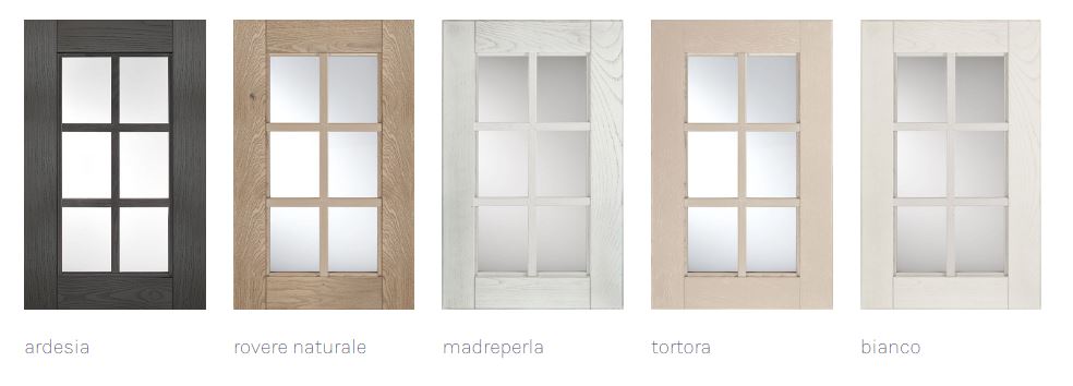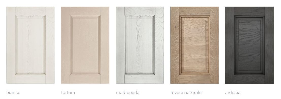 La cucina componibile Aisha ha un'ampia possibilità di personalizzazione delle finiture e della modularità.