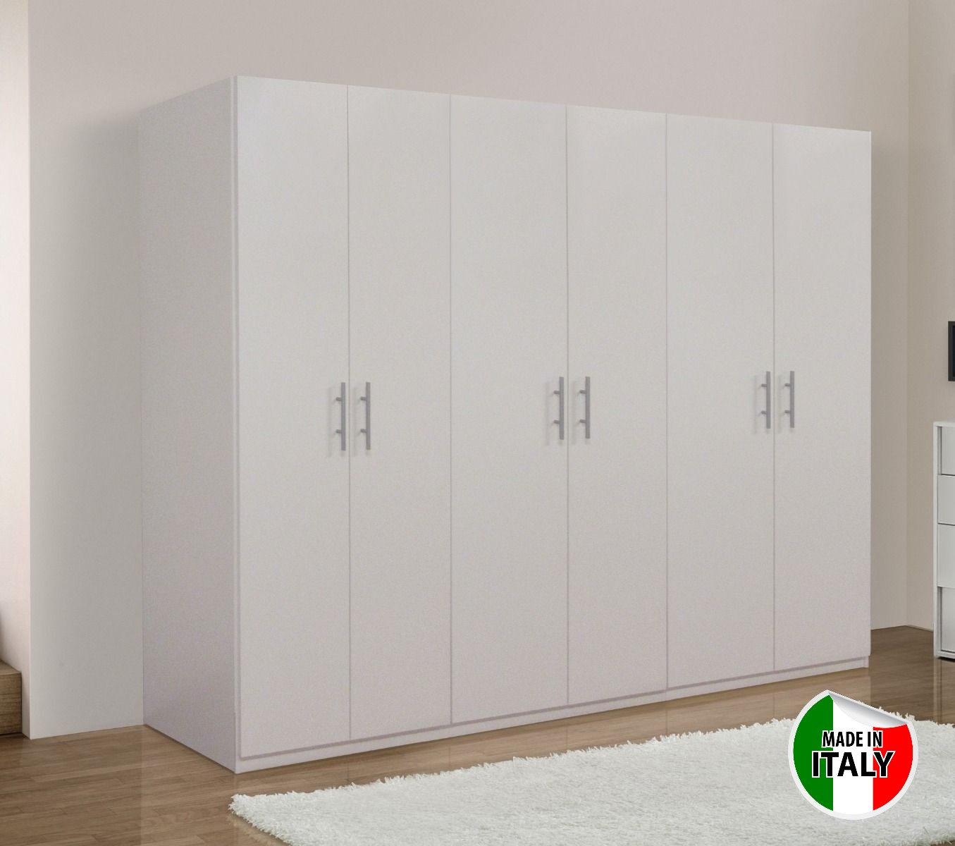 Armadio 6 ante battenti bianco opaco L.270 P.55 H.202 cm